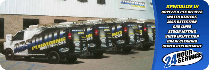 Absolute Plumbing is here to help you with any plumbing needs you have. Either you have a water leak or a water heater that just doesn't work anymore, we can help you repair or replace it. Absolute Plumbing has quality plumbers that have more than 15 years of experience in the plumbing industry. Absolute Plumbing provides services in the the Inland Empire, Orange, Riverside & Los Angeles counties.